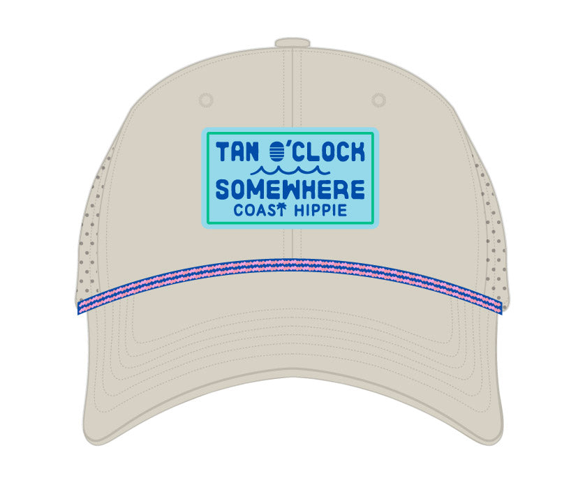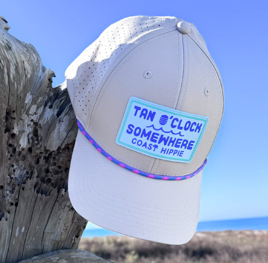 It's Tan O'Clock somewhere! Active hat material with a ventilated back and a snap back closure