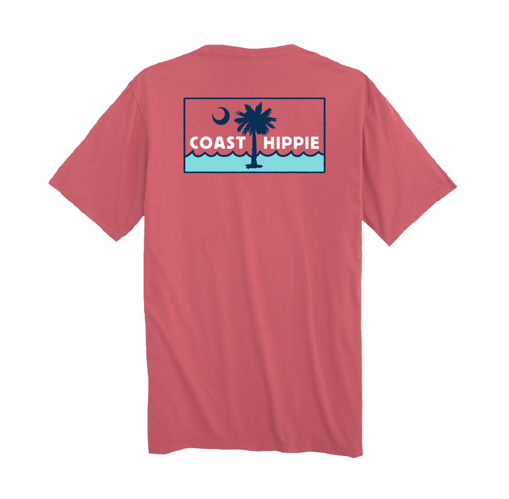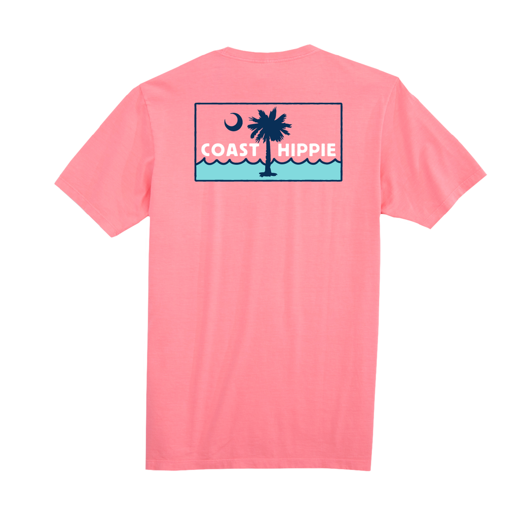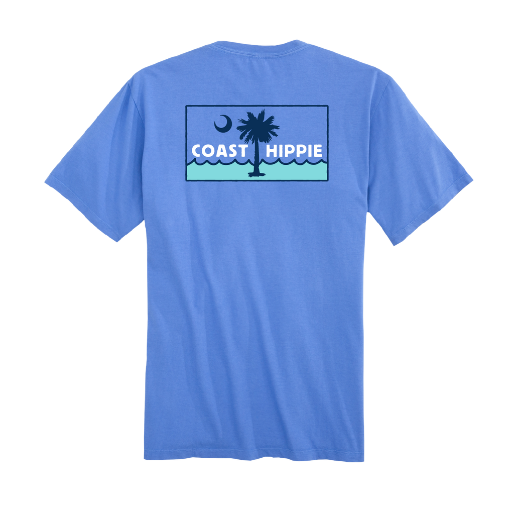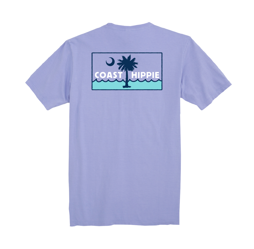 This tee features a clean, coastal graphic with a crescent moon, palm silhouette, and rolling waves framed in a classic badge design. It’s a subtle nod to Southern shoreline living — where salt air, warm nights, and easygoing days define the lifestyle.