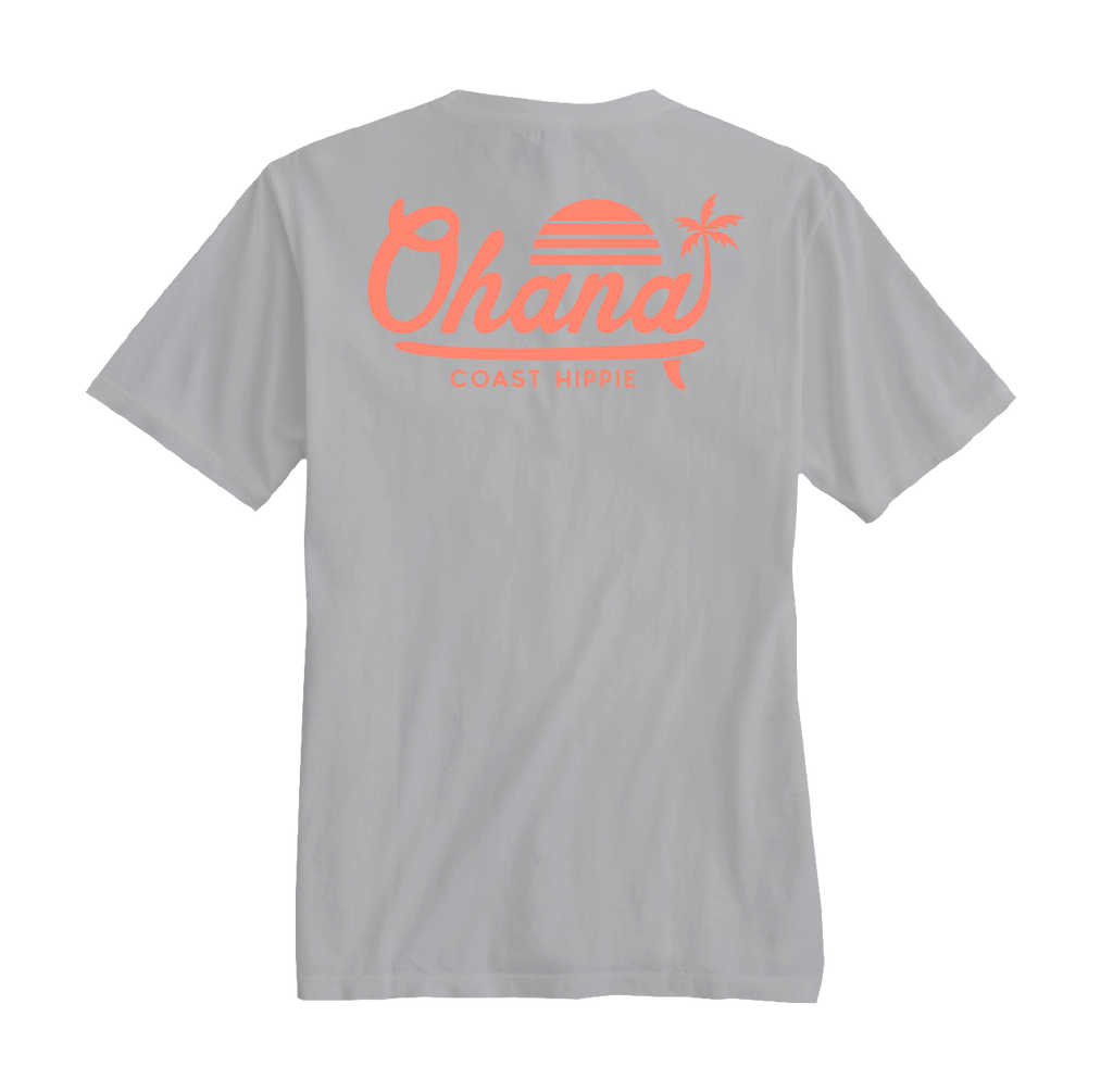 Ohana means family and that's what you are to us! We made this short sleeve t-shirt with a classic surf style graphic in a bright color pop we think is perfect for our fam.