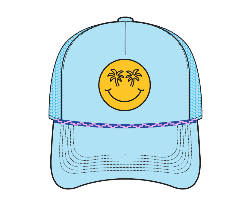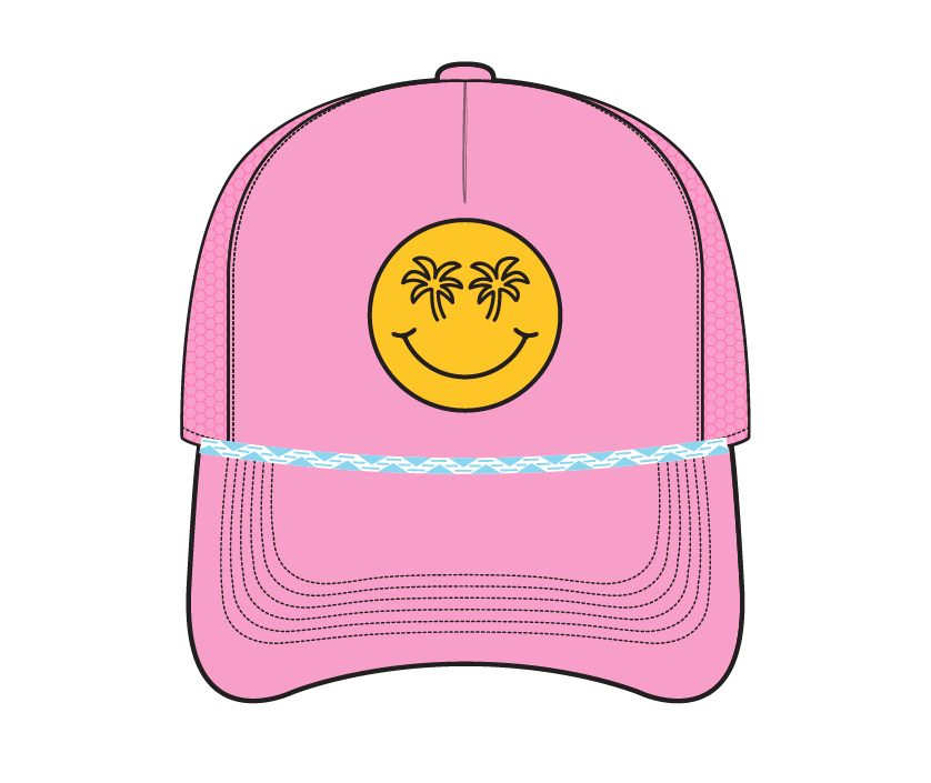 Classic foam trucker with a beach smiley face on the front. Fun rope contrast across the bill add a little something extra to this classic silhouette.